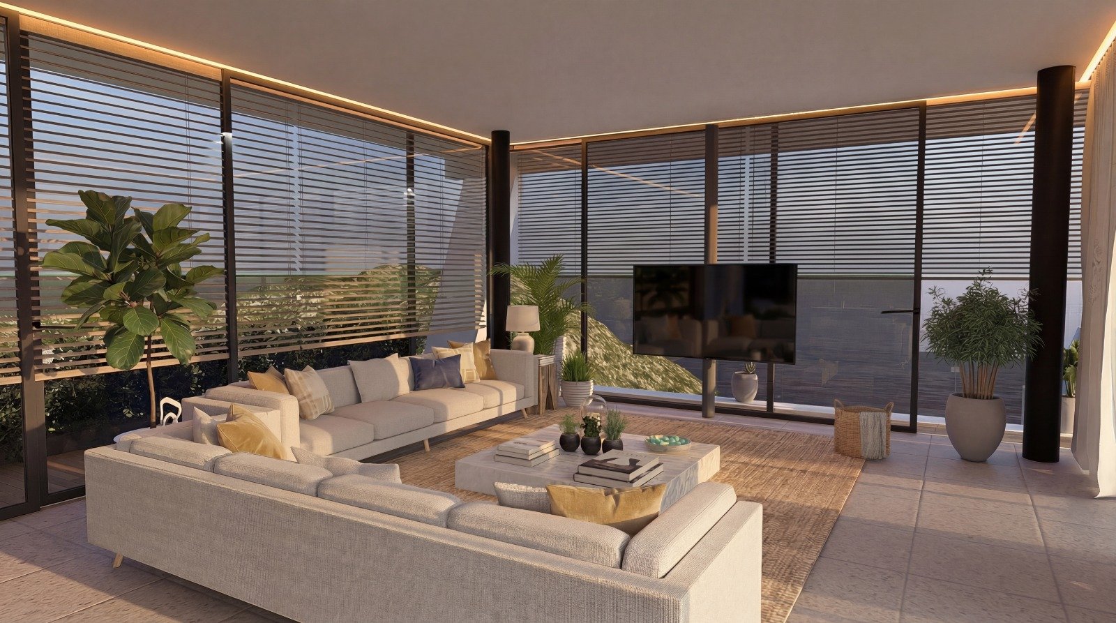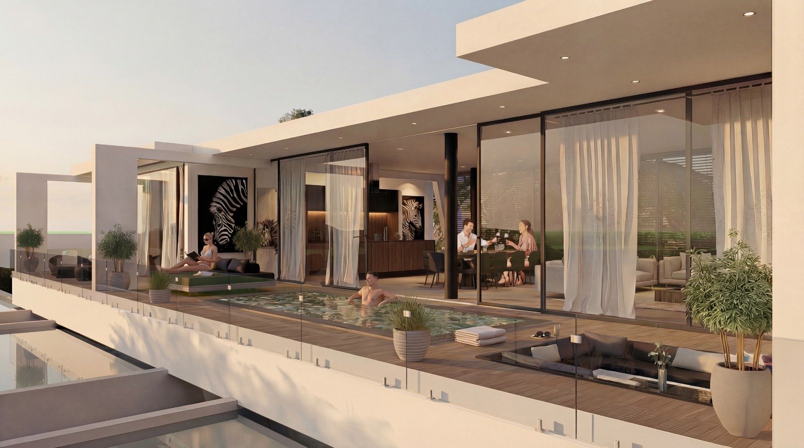 This 200-square-meter penthouse at Aqua Samui Residence in Koh Samui was conceived as the signature unit of the development, offering a rare two-bedroom layout with uninterrupted 360-degree views. The central design challenge was to fully embrace this exceptional setting while preserving a strong sense of comfort, privacy, and spatial calm. Rather than allowing the openness to feel exposed, the planning was carefully developed to frame the surrounding panorama in every direction while maintaining a warm and livable atmosphere. The result is a residence where openness and intimacy are held in balance, shaped through a refined contemporary language and a clear sense of place.