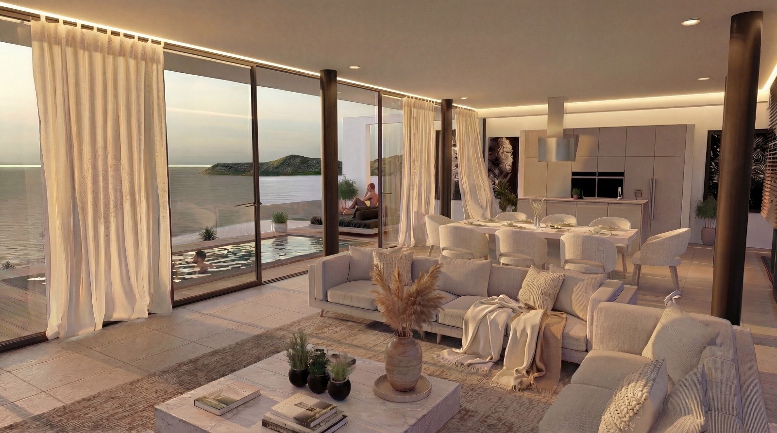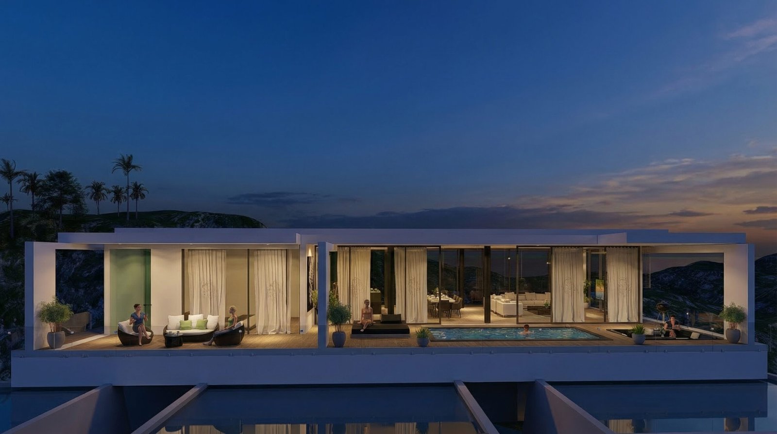 Located within Aqua Samui Residence, a collection of forty-six modern villas. this penthouse was designed to represent the most elevated expression of the project. Its architecture and interior language were guided by the desire to create a luxurious yet relaxed environment, where expansive glazing, clean lines, and understated materials work together to highlight the sea, sky, and horizon beyond. Every zone was arranged to capture the surrounding views while preserving a cohesive and welcoming interior experience. The final composition delivers a sophisticated contemporary penthouse that feels open, elegant, and deeply connected to the remarkable landscape of Koh Samui..